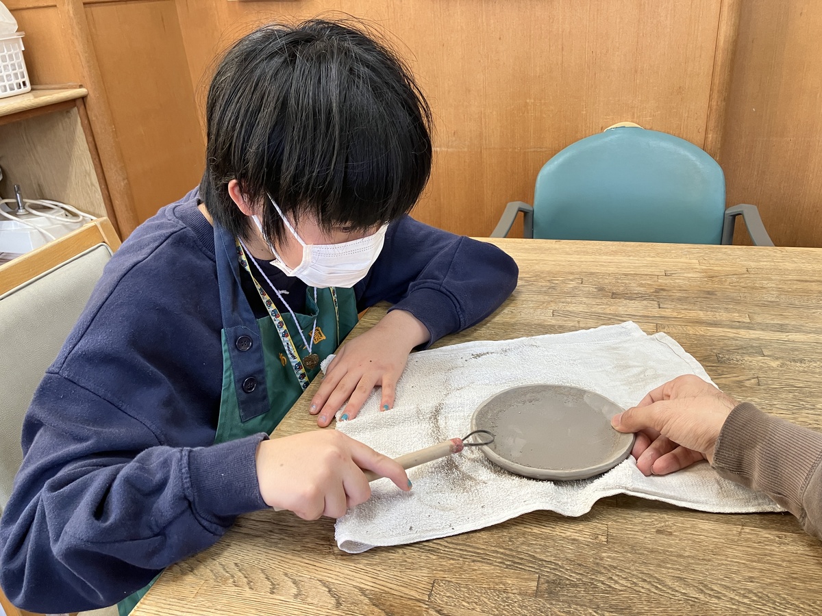 粘土をこねてお皿や箸置き等を製作しています。各々の感性を生かしながら陶芸の製作過程において、物事への集中力やより豊かな想像力が培われていきます